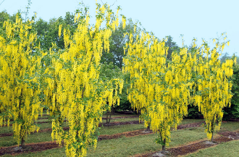 Бобовник Ватерера (Laburnum x watereri) — это изысканное декоративное растение, которое станет настоящим украшением вашего сада. Этот гибридный кустарник или небольшое дерево привлекает внимание своими длинными, свисающими кистями золотисто-желтых цветов, которые распускаются в конце весны и начале лета. Цветение бобовника Ватерера создает эффект "золотого дождя", придавая саду неповторимую атмосферу.