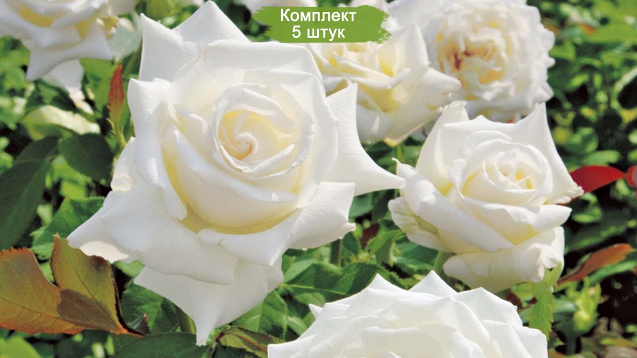 - В набор входит 5 саженцев шраб розы Уайт Кристмас, готовых к посадке.